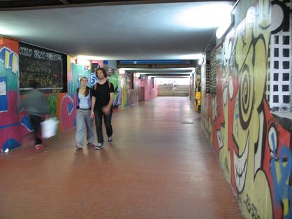 パヴィア駅下を通っている地下道は落書きいっぱいです。